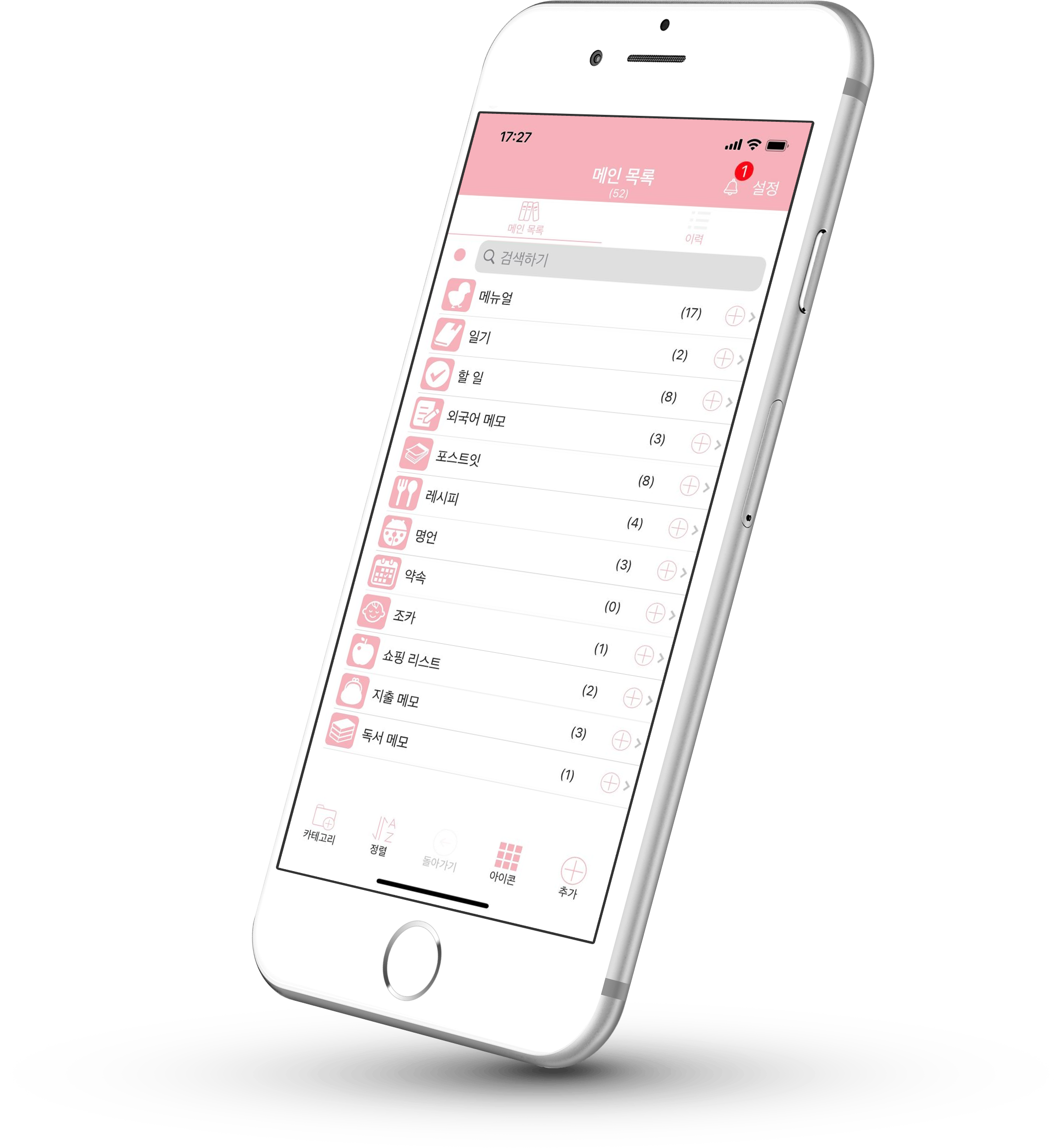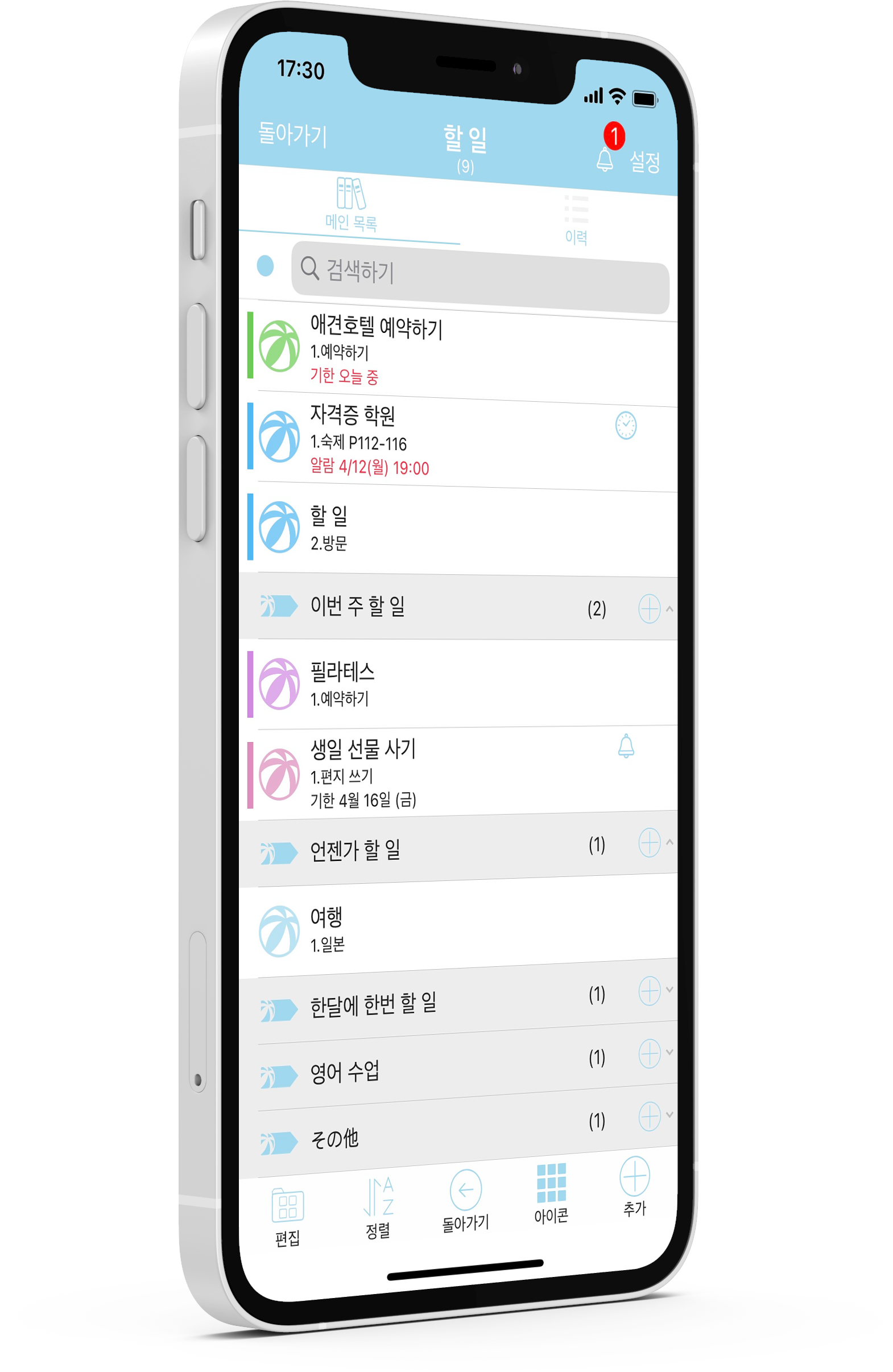 일이 너무 많아서 할 일을 정리하고 싶어도 바빠서 못할 때 이 앱이 큰 도움이 됩니다. 어디에 메모했는지 바로 알아볼 수 있고 할 일이 정리정돈되어 매일매일이 편안합니다.아이콘이나 카테고리를 변경할 수도 있고 너무 좋아요!