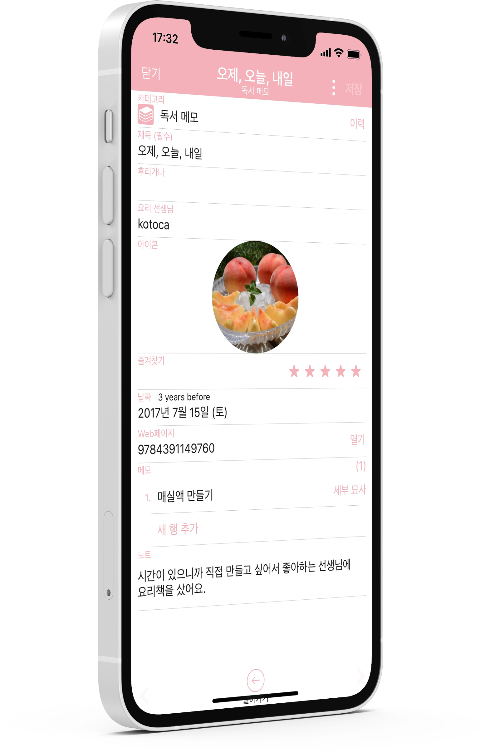 노트 목록에 독서 감상의 기록을 하거나 떠오른 아이디어를 간단하게 메모 할 수 있습니다.
